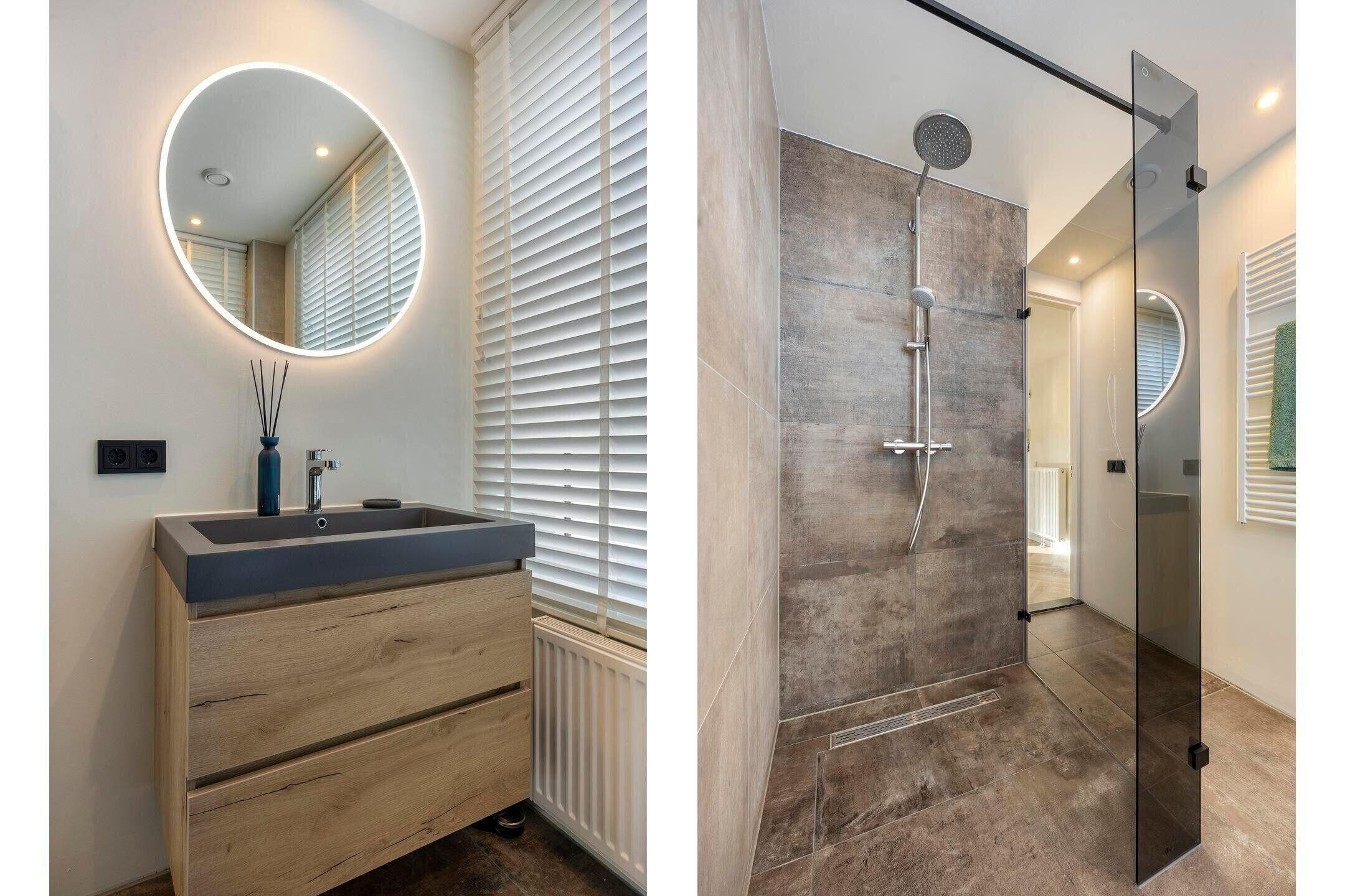 - Inloopdouche, wastafel, en wastafelmeubel